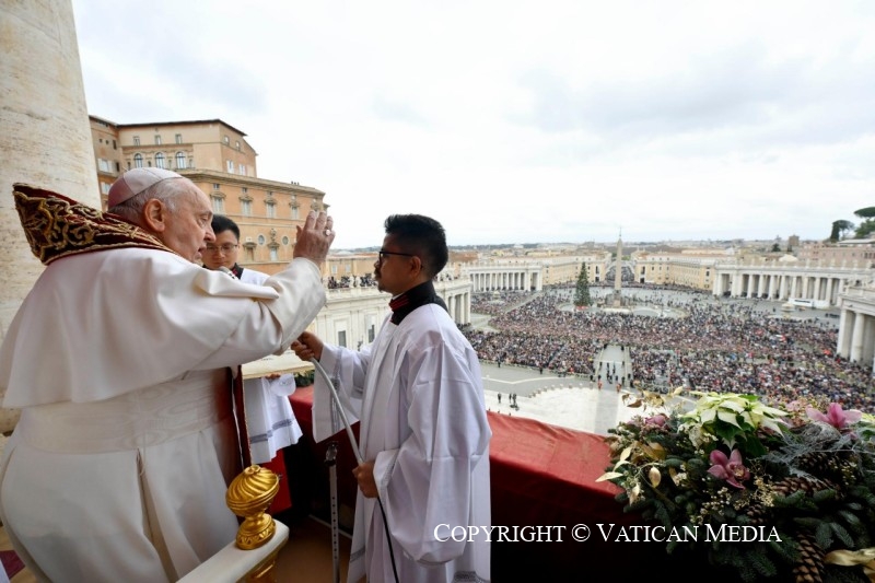 (ZENIT Noticias / Ciudad del Vaticano, 25.12.2023).- A las 12 del medio día, tras la santa misa de Navidad del 25 de diciembre en la basílica de San Pedro, el Papa Francisco se asomó por el balcón central de la basílica vaticana para impartir la bendición “urbi et orbi” que da dos veces al año: una en Pascua y otra en Navidad. Unas 70 mil personas se encontraban en la Plaza para recibir la bendición y escuchar el tradicional mensaje navideño del Pontífice. Ofrecemos a continuación las palabras del Papa en lengua española con negritas añadidas por ZENIT para destacar puntos esenciales del mensaje.