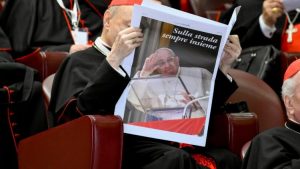 Muchos de los habitantes de las aldeas montañosas caminaron hasta el lugar para participar en la misa Foto: AFP