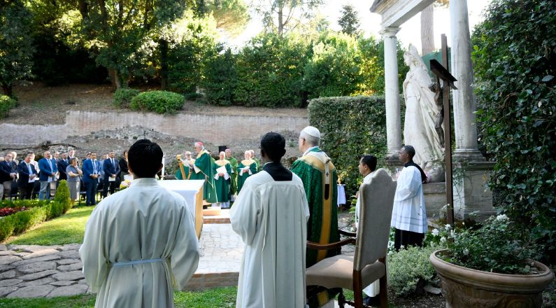 (ZENIT Noticias / Castelgandolfo, Ciudad del Vaticano, 09.07.2025).- Por la mañana del miércoles 9 de julio, el Papa León XIV presidió la misa en los jardines de las Villas Pontificias de Castelgandolfo. El altar portátil de la sacristía papal se situó bajo la estatua de la Virgen, el mismo lugar que visitó el Papa durante su primera visita a Castel Gandolfo y que quedó inmortalizado en una foto difundida por la oficina de prensa. Frente a la estatua de la Virgen hay un estanque.