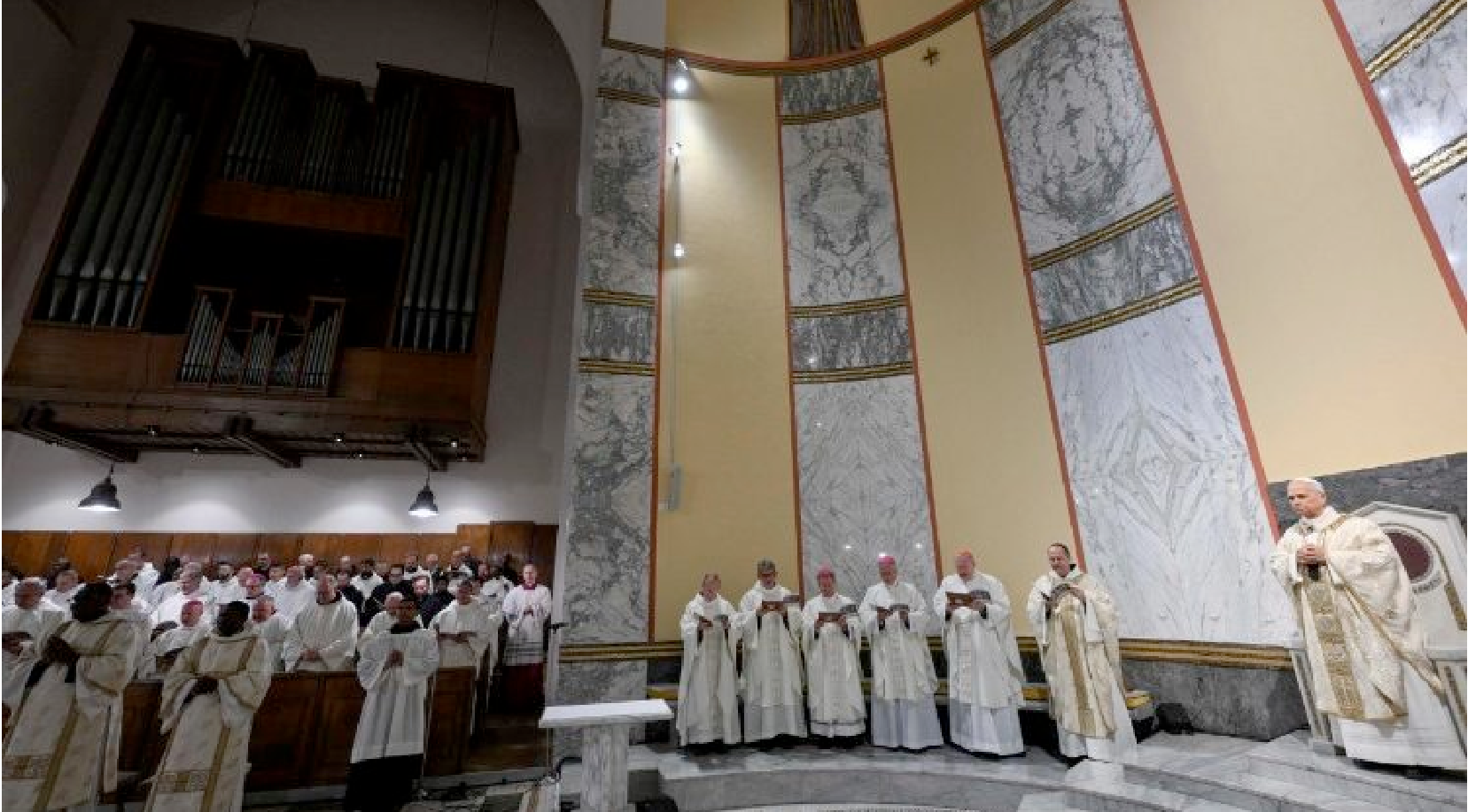 Aquí todo esto se lleva a cabo de diversas maneras: en primer lugar, en la liturgia, luego en la Lectio divina, en la investigación, en la pastoral, con la participación de monjes procedentes de todas partes del mundo y con la apertura a clérigos, religiosos, religiosas y laicos de los más diversos orígenes y condiciones. El monasterio, el Ateneo, el Instituto Litúrgico, las actividades pastorales relacionadas con la iglesia, de acuerdo con las enseñanzas de San Benito, deben crecer así cada vez más en sinergia como una auténtica «escuela del servicio del Señor» (San Benito, Regla, Prólogo, 45).