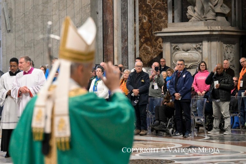 Nosotros también participamos de manera especial de este año de gracia, precisamente hoy al celebrar, con esta jornada mundial, el Jubileo de los Pobres. Toda la Iglesia se regocija y se alegra, y ante todo a ustedes, queridos hermanos y hermanas, deseo transmitirles con fuerza las palabras irrevocables del Señor Jesús: «Dilexi te – Te he amado» (Ap 3,9). Sí, a pesar de nuestra pequeñez y pobreza, Dios nos mira como nadie más y nos ama con un amor eterno. Y su Iglesia, aún hoy, quizá especialmente en nuestro tiempo, todavía herida por pobrezas ―antiguas y nuevas―, desea ser «madre de los pobres, lugar de acogida y de justicia» (Exhort. ap. Dilexi te, 39).