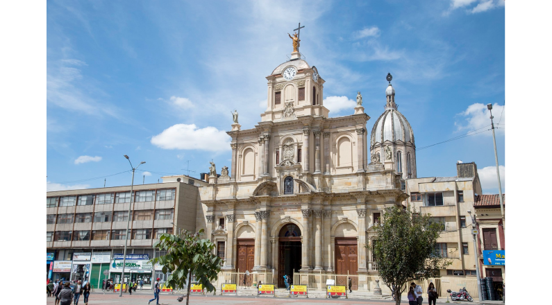 Es la única iglesia en Colombia donde se manifiesta la unión entre Iglesia y Estado. Su cúpula de 55 metros de altura tiene un gran vitral con los colores de la bandera nacional, que se ilumina en la noche y proyecta la presencia de la Iglesia y el Estado en la capital. El escudo nacional resalta en la fachada.