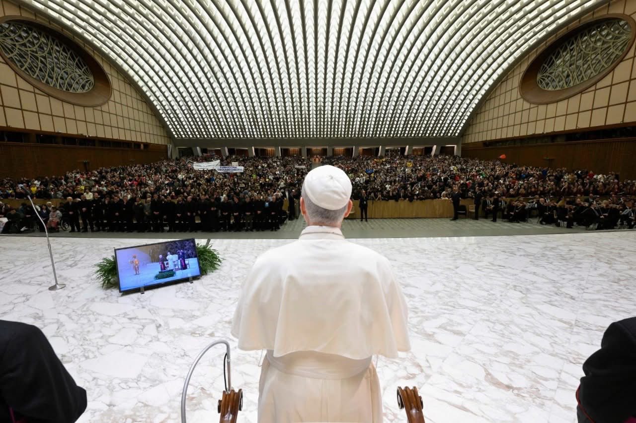 Como recordamos en el vídeo del inicio, durante el Año Santo vivimos un momento muy fuerte aquí en Roma, con miles y miles de sus compañeros de todo el mundo. Personas de todas las lenguas y culturas se han unido en la misma oración, elevando alegres alabanzas a Dios y sentidas peticiones por la paz entre los pueblos. Ahora, en este «vuestro» encuentro con el Papa, ustedes, jóvenes romanos, renuevan el espíritu de aquellos días memorables, comprometiéndose a ser no solo peregrinos de la esperanza, sino también sus testigos. ¿Y cómo podemos serlo realmente?