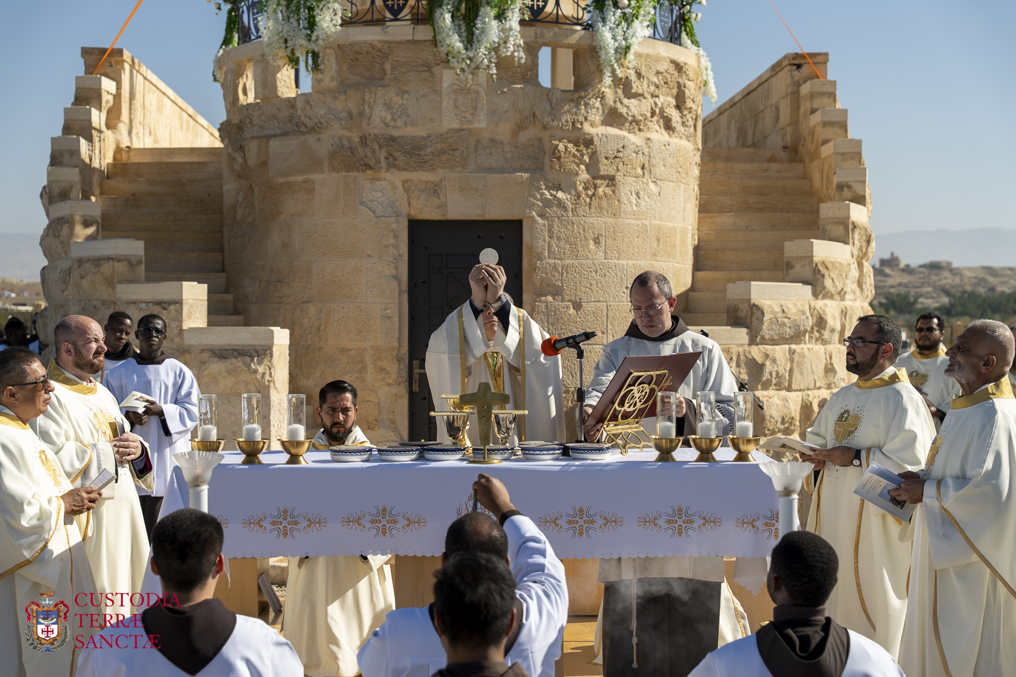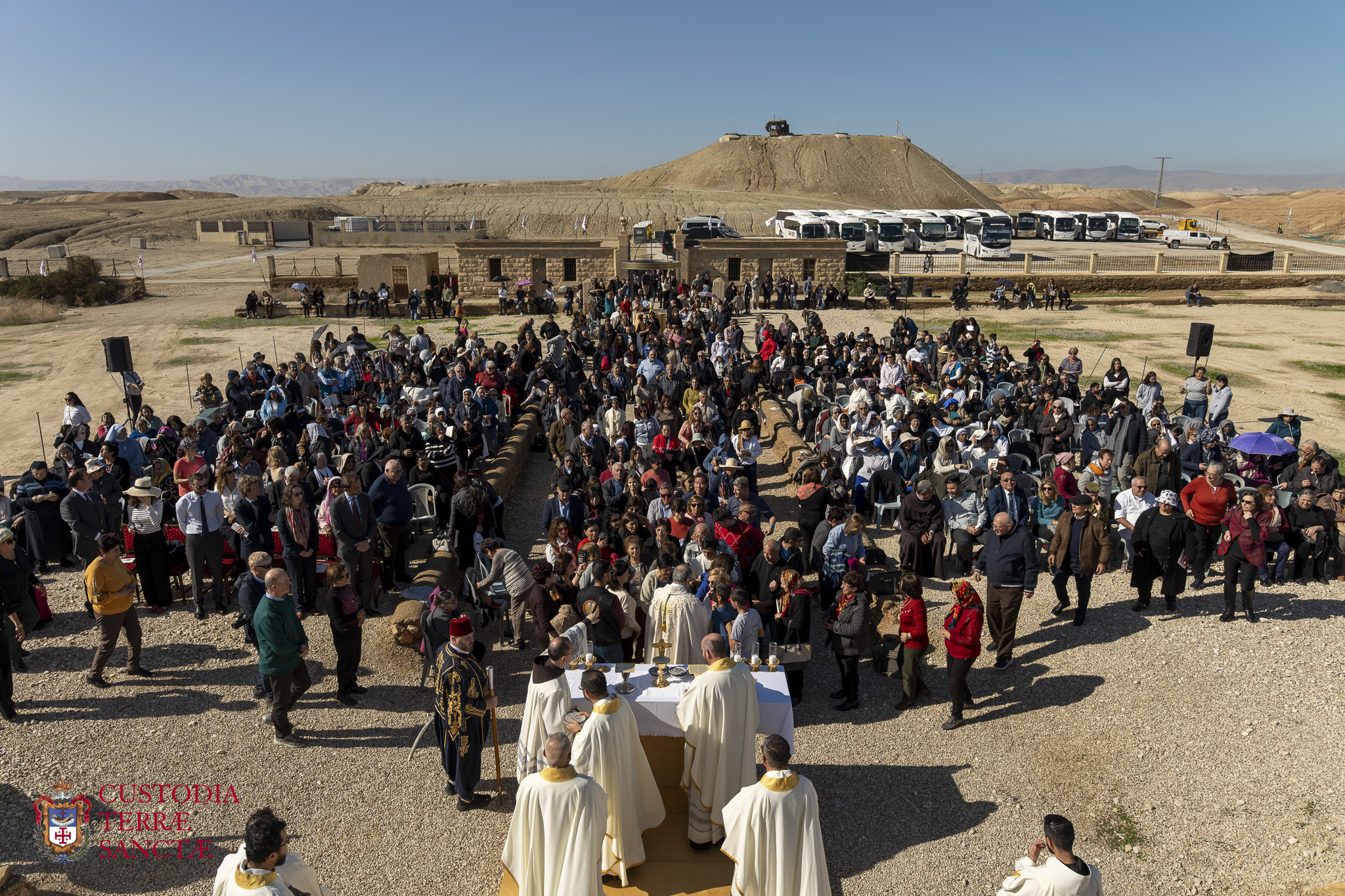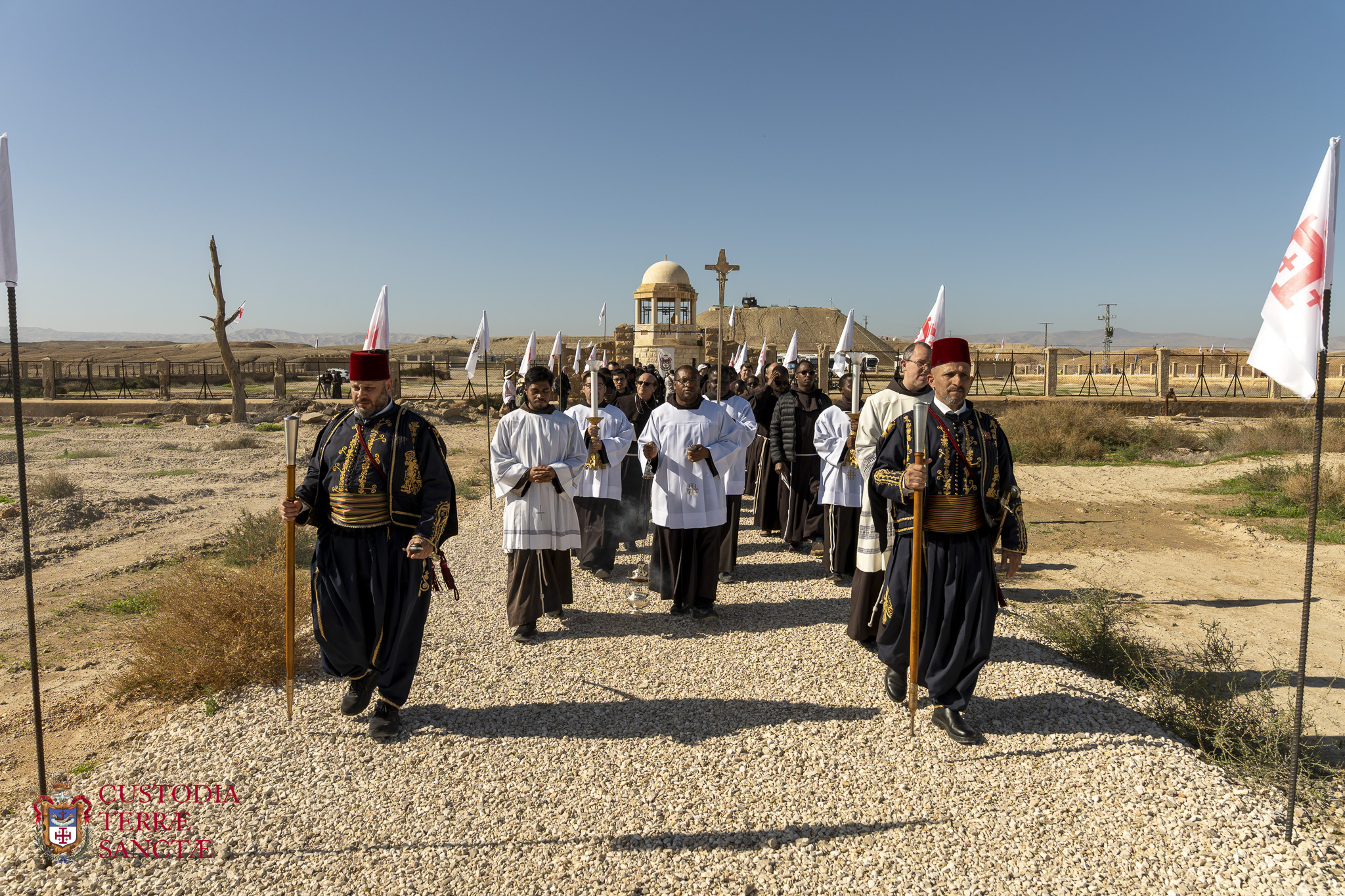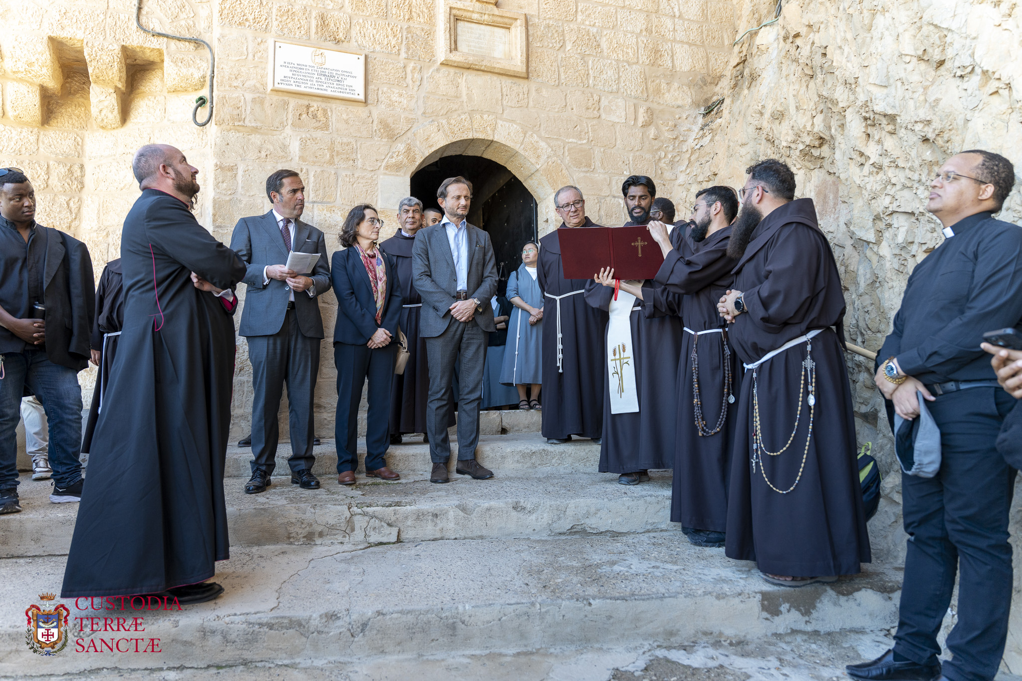 Tras la celebración en el río Jordán, los frailes de la Custodia de Tierra Santa, junto con las autoridades civiles y los fieles, peregrinaron a la cima del Monte de las Tentaciones. Aquí se encuentra el monasterio greco-ortodoxo, que recuerda los relatos evangélicos de las tentaciones de Jesús en el desierto y los cuarenta días de ayuno y oración que experimentó el Señor después de su bautismo. El lugar, con vistas a la llanura de Jericó, ofreció a los participantes un momento ulterior de reflexión y meditación, permitiéndoles conectar idealmente el misterio del Bautismo de Cristo con el inicio de su vida pública y la prueba que vivió en el desierto.