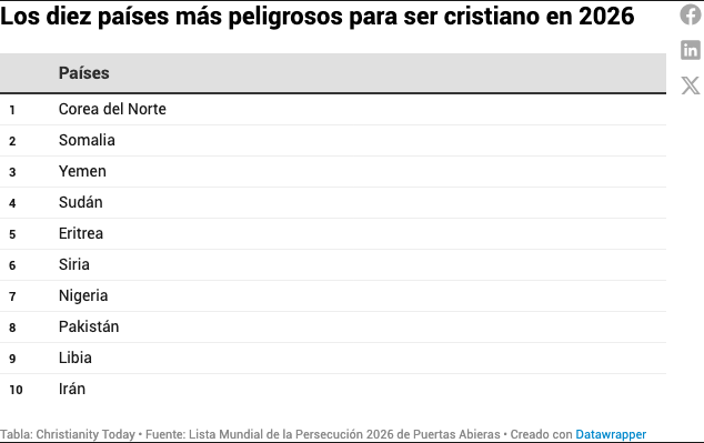 Siria destaca este año por un cambio preocupante. Anteriormente clasificada como «grave», ahora ha pasado a la categoría de «extrema». Open Doors estima que solo quedan unos 300.000 cristianos en el país, cientos de miles menos que hace una década. Según Nani, el peligro ha aumentado porque el poder político sigue fragmentado, lo que deja espacio para grupos armados y milicias locales, como lo ilustran los recientes enfrentamientos en Alepo.