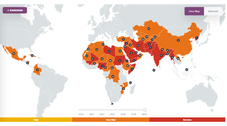 También hay indicios aislados de progreso. Bangladesh descendió del puesto 24 al 33 tras una reducción de la violencia tras la agitación política de 2024, mientras que un fallo judicial histórico en Malasia ordenó al gobierno reabrir la investigación sobre la desaparición del pastor Raymond Koh en 2017, imponiendo sanciones económicas que ahora superan los 7 millones de dólares estadounidenses.