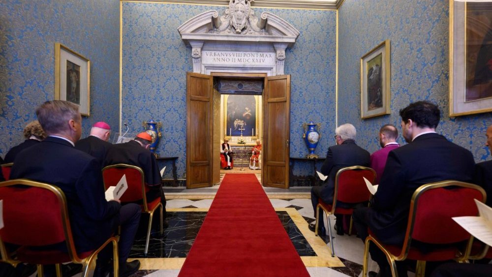 A este respecto, cuando el arzobispo Michael Ramsey y San Pablo VI anunciaron el primer diálogo teológico entre anglicanos y católicos, hablaron de buscar el «restablecimiento de la plena comunión en la fe y en la vida sacramental» (cf. Declaración conjunta, 24 de marzo de 1966). Ciertamente, este camino ecuménico ha sido complejo. Aunque se han logrado muchos avances en cuestiones históricamente divisivas, en las últimas décadas han surgido nuevos problemas, lo que ha hecho que el camino hacia la plena comunión sea más difícil de discernir. Sé que la Comunión Anglicana también está enfrentando muchas de estas mismas cuestiones en la actualidad. Sin embargo, no debemos permitir que estos desafíos constantes nos impidan aprovechar cada oportunidad posible para proclamar juntos a Cristo ante el mundo. Como dijo mi querido predecesor, el Papa Francisco, a los Primados de la Comunión Anglicana en 2024: «Sería un escándalo que, debido a las divisiones, no realizáramos nuestra vocación común de dar a conocer a Cristo» (Discurso a los participantes en la Asamblea de los Primados de la Comunión Anglicana, 2 de mayo de 2024). Por mi parte, añado que también sería un escándalo si no siguiéramos trabajando para superar nuestras diferencias, por muy insuperables que puedan parecer.