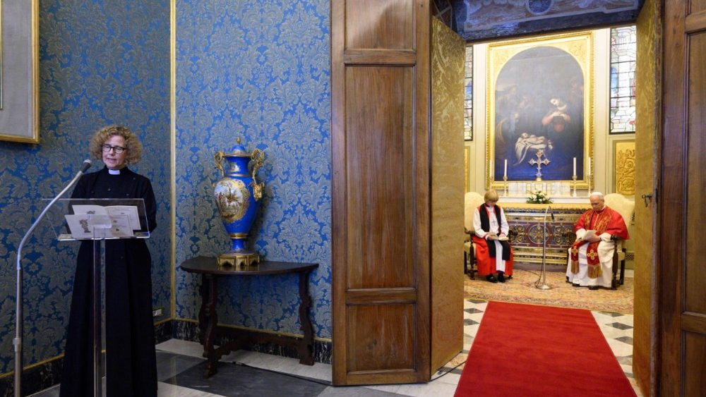 Su visita me trae a la memoria el memorable encuentro, hace sesenta años, entre San Pablo VI y el Arzobispo Michael Ramsey, cuyo aniversario conmemoró junto con el Cardenal Koch en la Catedral de Canterbury la mañana siguiente a su toma de posesión. Desde entonces, los Arzobispos de Canterbury y los Obispos de Roma han seguido reuniéndose para orar juntos, y me complace que hoy continuemos con esta tradición. Asimismo estoy agradecido por el ministerio del Centro Anglicano en Roma, también instituido hace sesenta años, y saludo de manera especial al director del Centro, el obispo Anthony Ball, a quien usted nombrará esta tarde como su representante ante la Santa Sede.